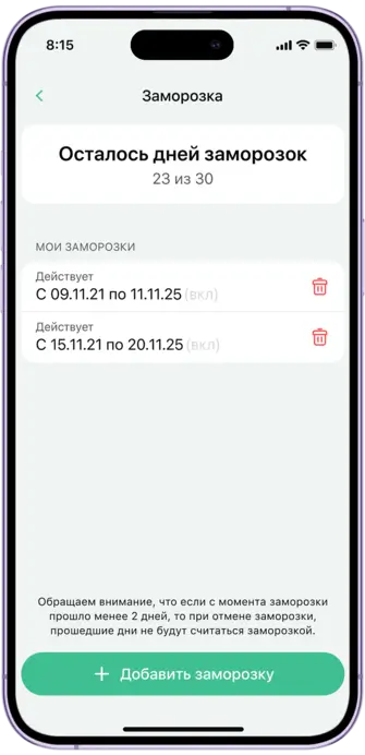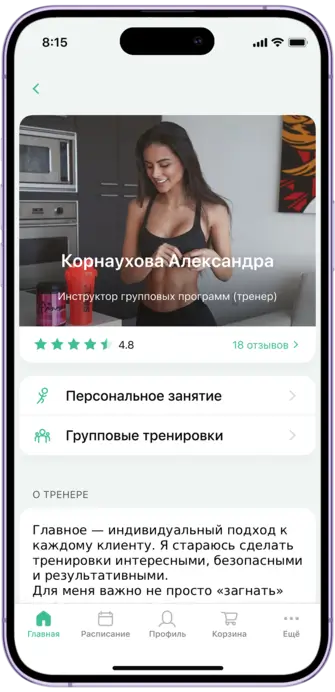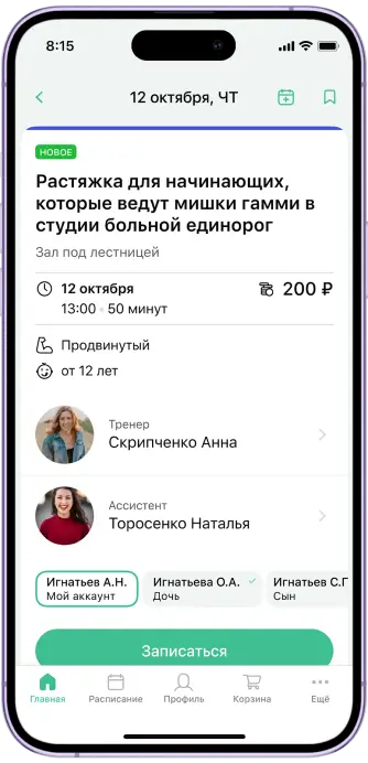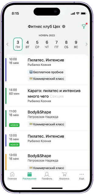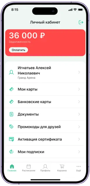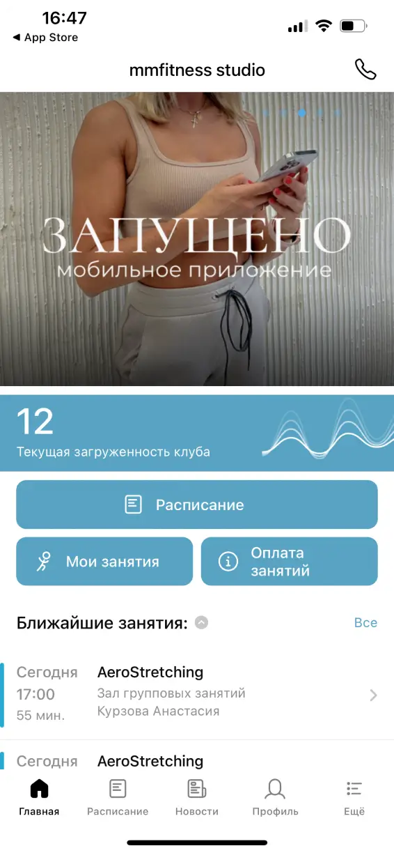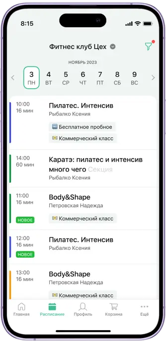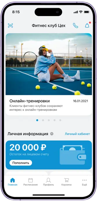 Теперь можно быстро и удобно планировать посещения занятий, оформлять заморозку или продление и забыть о том, что фитнес-карту нужно носить с собой