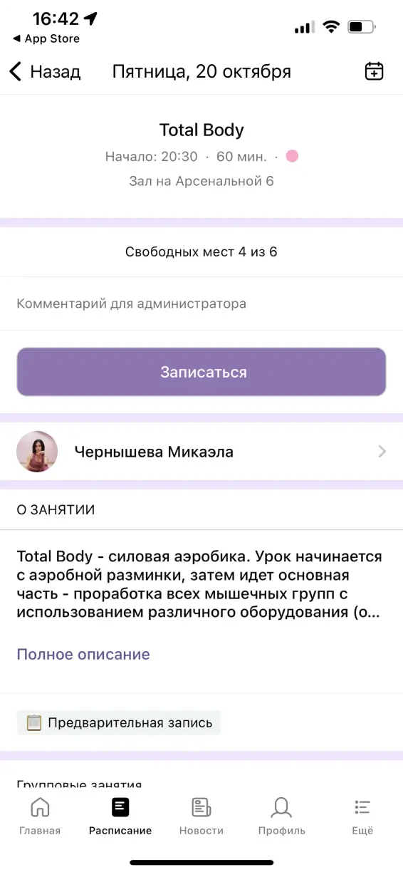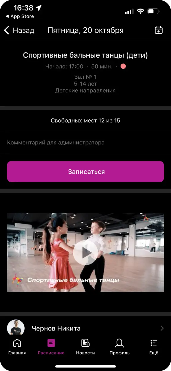 Считаю, это хороший имиджевый элемент для школы танцев — «записывайтесь на занятия в нашем мобильном приложении». Mobifitness учитывает специфику танцевального бизнеса.