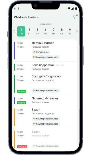 CRM для школы танцев с встроенной системой учета, мобильным приложением для клиентов и тренеров, онлайн-оплатой и виджетом расписания