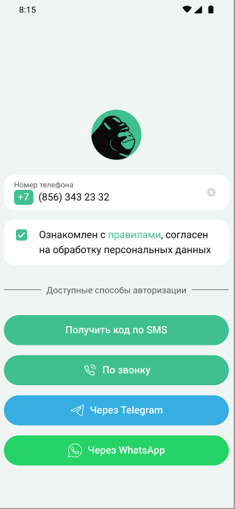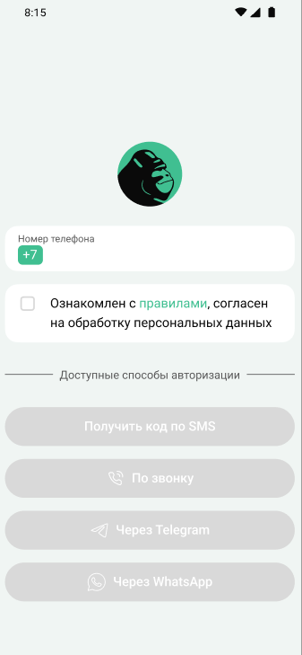 - Под входящей авторизацией подразумевается отправка кода с сервера на мобильный телефон пользователя и ввод этого кода в приложении.