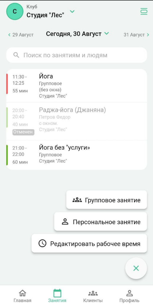 Мобильное приложение для тренера фитнес-студии или фитнес-клуба