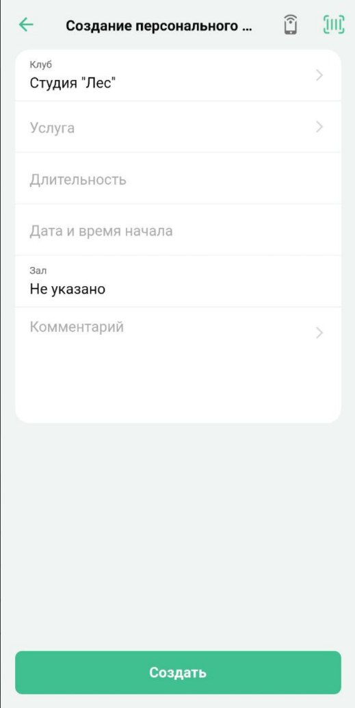 - Пользователь может создавать персональное/сплит занятие на экране расписания.