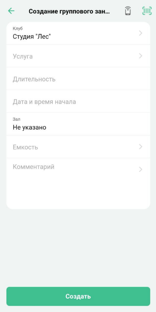 - Пользователь может создавать групповое занятие как из расписания конкретного клуба, так и из объединенного расписания по всем клубам. Если занятие создается из объединенного расписания, то в карточке создания занятия в первой строке необходимо выбрать клуб.