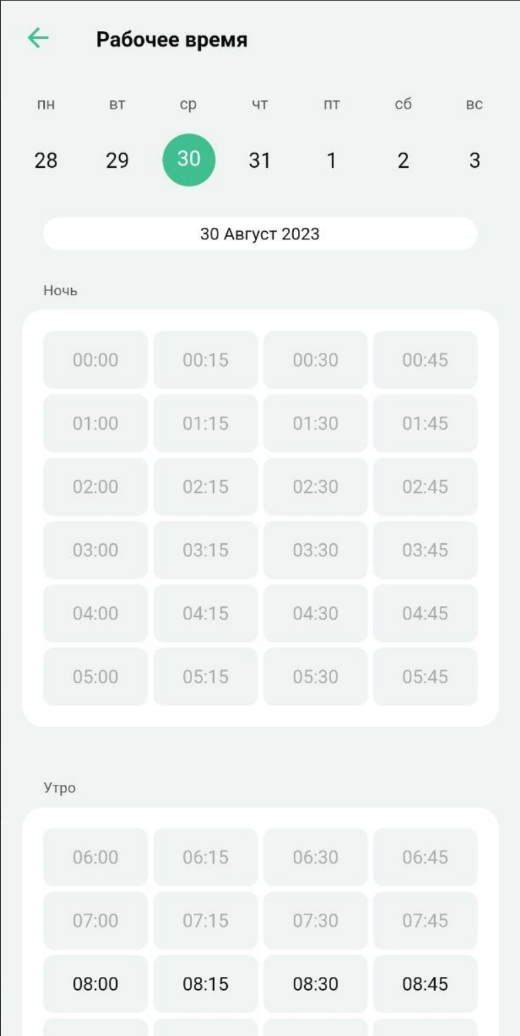 Пользователь может изменять свое рабочее время если имеет на это доступ.