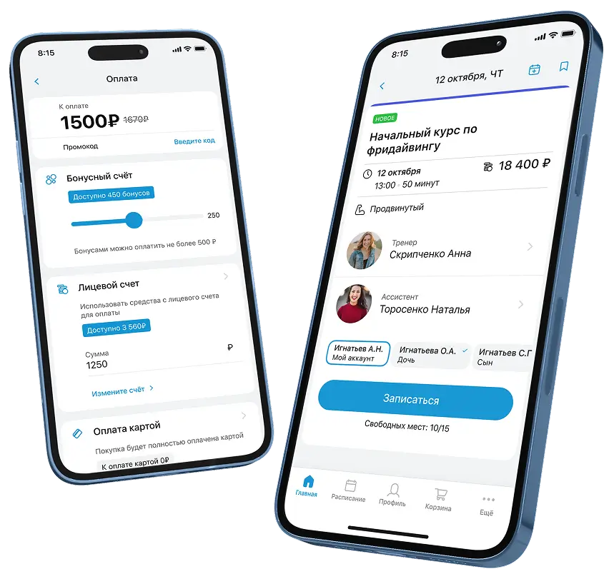 - Через ваше брендированное мобильное приложение от Mobifitness