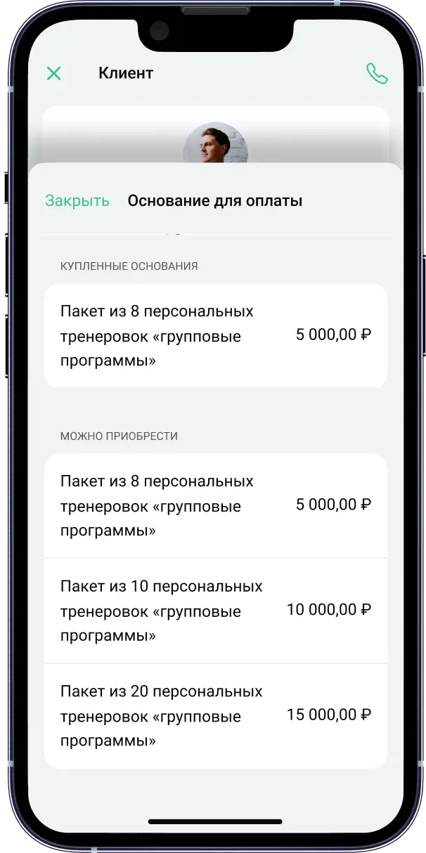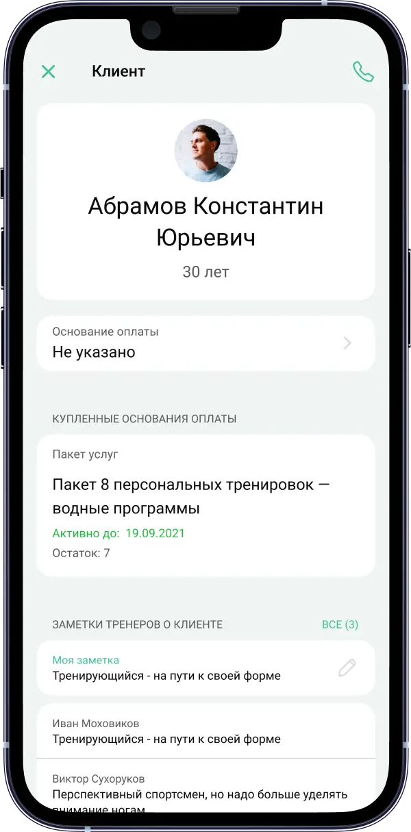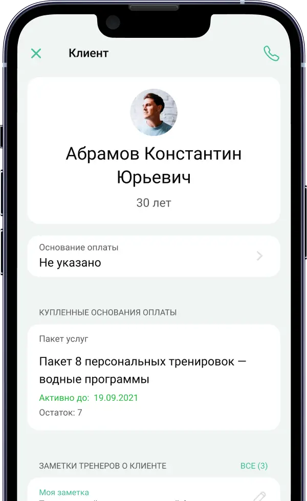 В процессе работы у тренера появляется необходимость иметь прямой контакт с клиентом, чтобы напомнить об оплате занятия или об окончании абонемента/членства. Из приложения тренер может связаться с клиентом. Такой подход способствует своевременному продлению клиентами абонементов, повышая продажи для тренера